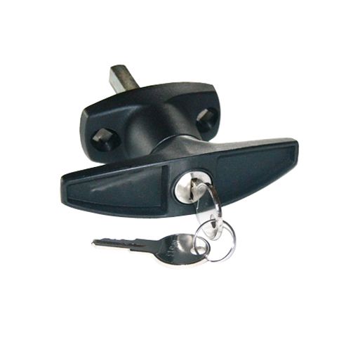Key lockable T handle with 45.5mm fixing centers.