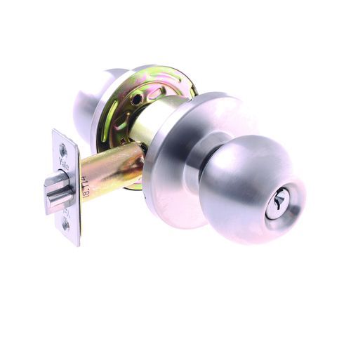 Entrance Set - Outside opened by knob unless locked. Key locks or unlocks Outside. Inside locked by snib