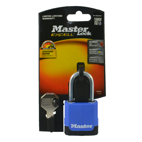 Master Lock 45mm Laminated Steel Padlocks With Weather Tough Thermoplastic Coating For Corrosive Environments - Quad pack